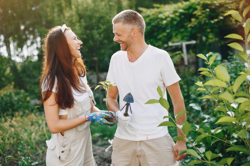 Holz fühlt sich bei 40–60 Prozent Luftfeuchte und 18–23 Grad wohl. Luftbefeuchter, Pflanzen oder Wasserschalen helfen, Schwankungen zu dämpfen. Notieren Sie Werte mit einem Hygrometer und teilen Sie Ihre besten Wintertricks in den Kommentaren.